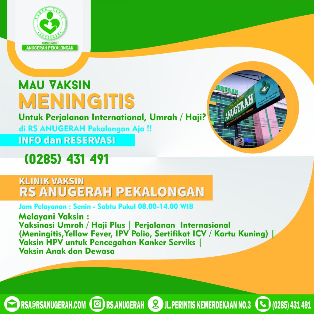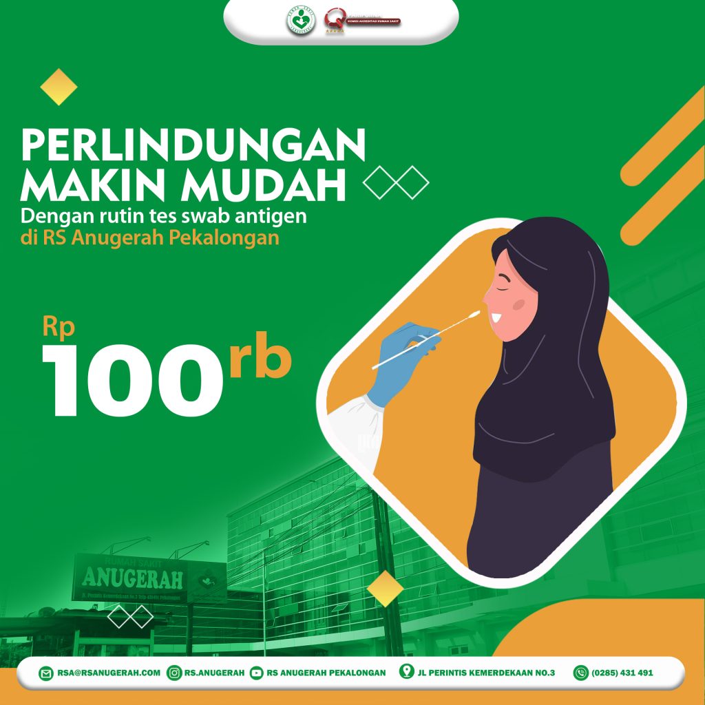 Pastikan kamu dan keluarga bebas Virus Covid-19 dengan melakukan skrining Covid-19 di Rumah Sakit Anugerah Pekalongan. Jadwal Pelayanan : Pelayanan 24 Jam bagi pasien rawat inap Pelayanan setiap hari pukul 10.00 – 20.00 WIB bagi pasien umum Info lebih lanjut, bisa menghubungi call center (0285) 431491. Terimakasih