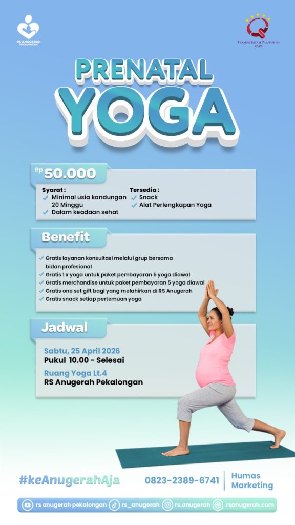 Mempersiapkan persalinan bukan cuma soal fisik, tapi juga ketenangan pikiran. Yuk, bergabung di kelas Prenatal Yoga RS Anugerah Pekalongan untuk menjaga kebugaran selama masa kehamilan.